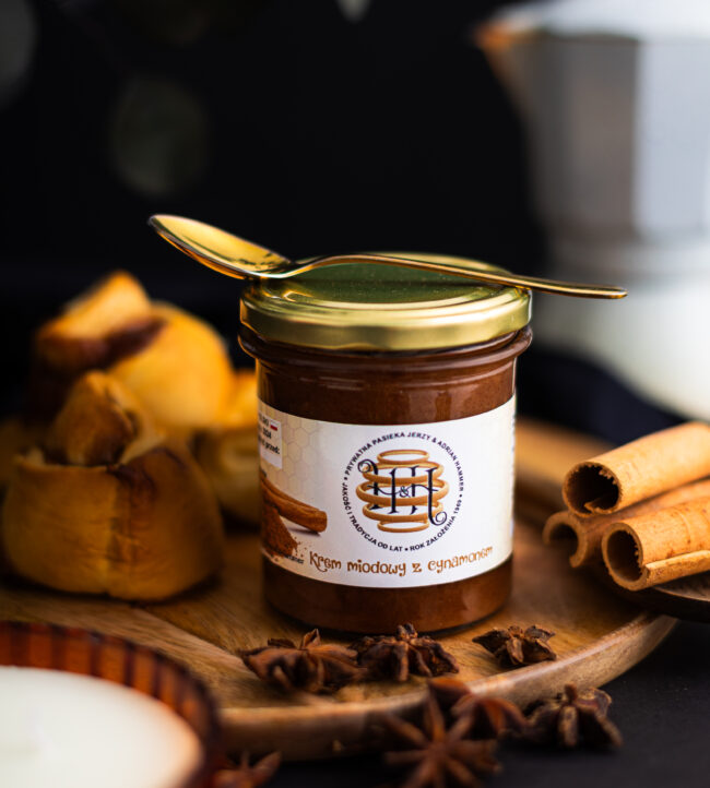 Aksamitny krem miodowy z cynamonem to połączenie miodu wielokwiatowego z cynamonem cejlońskim.