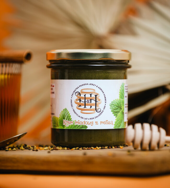 Aksamitny krem miodowy z melisą to połączenie miodu wielokwiatowego z melisą.