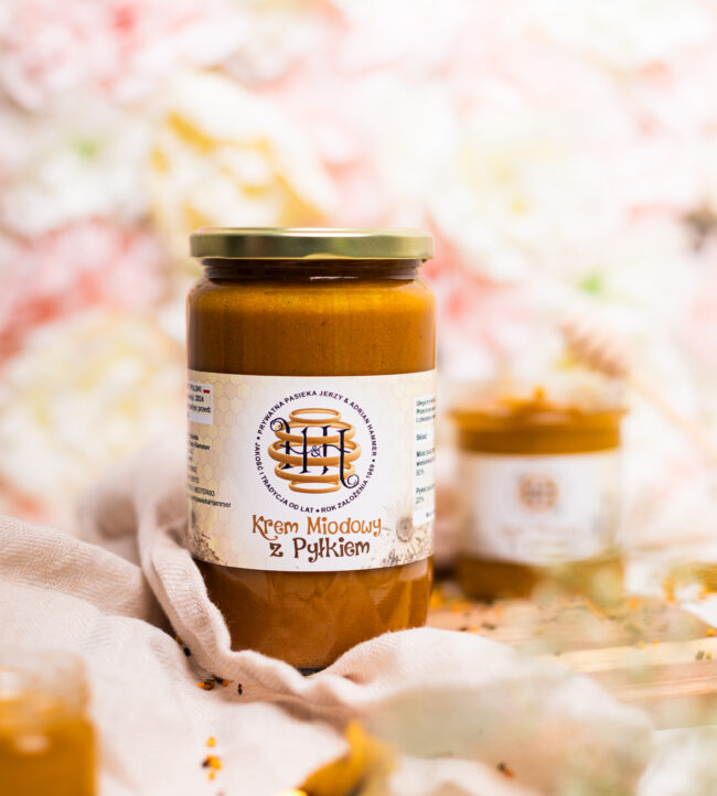 Połączenie pyłku kwiatowego i miodu wielokwiatowego. Pyłek w miodzie jest gotowym do spożycia produktem, nie zawierającym żadnych sztucznych dodatków. Jest kremową mieszaniną naturalnego miodu wielokwiatowego i mielonego pyłku kwiatowego. Regularnie stosowany doskonale odżywia, uodparnia i wspomaga organizm. Już po kilku dniach można zauważyć lepsze samopoczucie i poprawę w obrazie krwi.