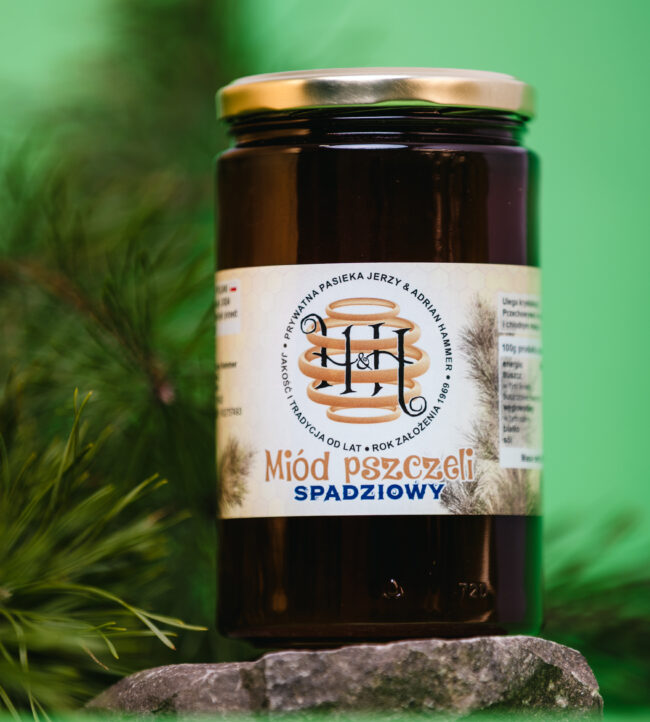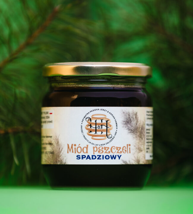 Cechuje się leśnym aromatem, olejkami eterycznymi w składzie oraz wysokimi właściwościami antybiotycznymi. Miód spadziowy ze spadzi iglastej powstaje z wydzieliny produkowanej przez mszyce bytujące na igłach drzew iglastych. Szczególnie pomocny przy problemach z układem oddechowym – w astmie oraz przewlekłym kaszlu. Wyśmienity, pełny smak miodu spadziowego doskonale sprawdzi się w kuchni.