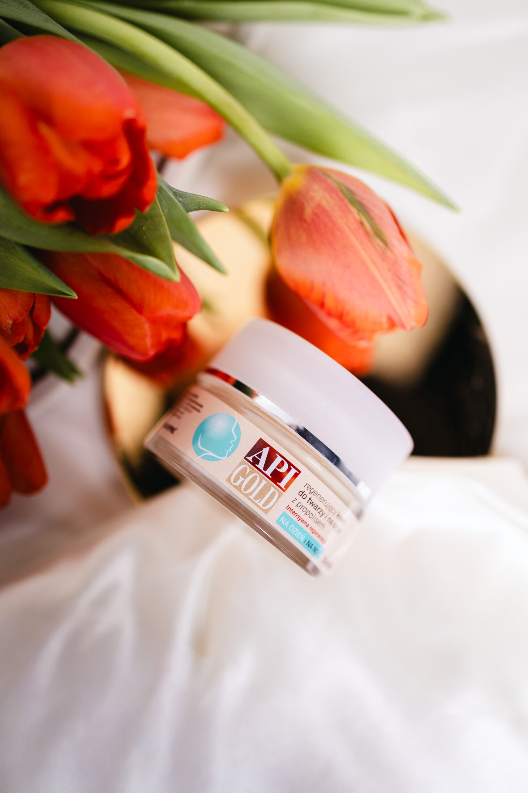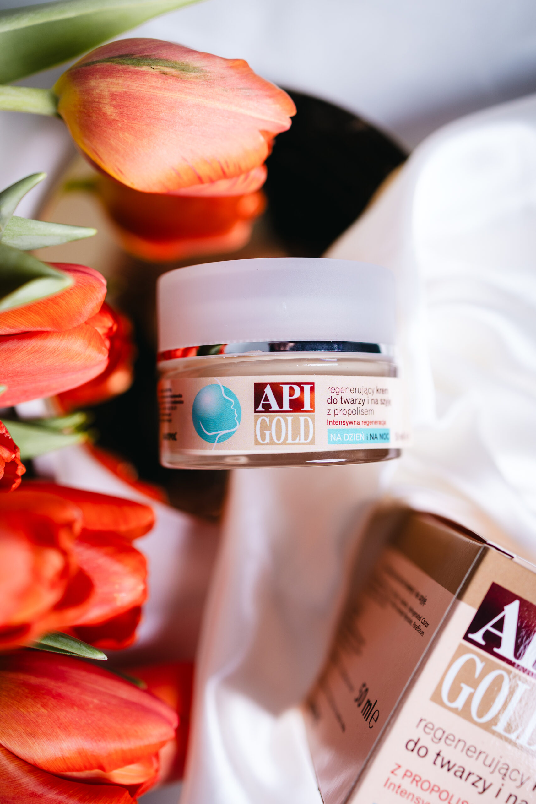 Propolis to biologicznie czynny składnik, który zastosowano w kremie Api Gold. Propolis stanowi naturalny filtr ochronny, który powstrzymując działanie promieni UV, chroni skórę przed ich szkodliwym działaniem. Skóra twarzy i szyi po zastosowaniu kremu, nabiera świeżego kolorytu, jest gładka i elastyczna.